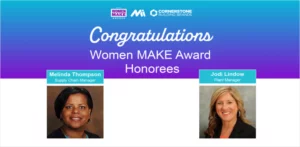 Thompson and Lindow will be two of 130 women recognized at the annual Women MAKE Awards Gala in Washington, D.C. on April 20, 2023, and represent the fourth and fifth honorees from Cornerstone Building Brands since 2020. To date, the program has honored more than 1,300 women.